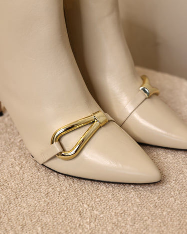 Bico fino, salto agulha e aquele pormenor dourado que faz toda a diferença.