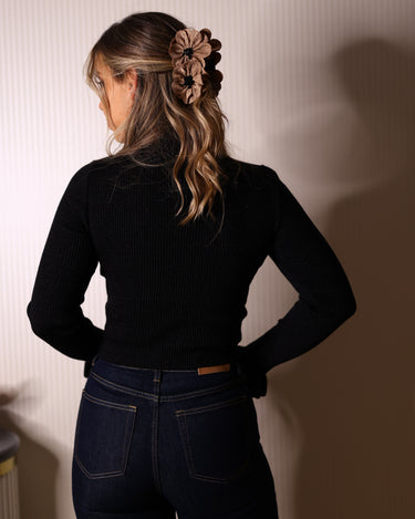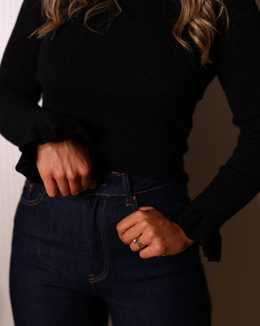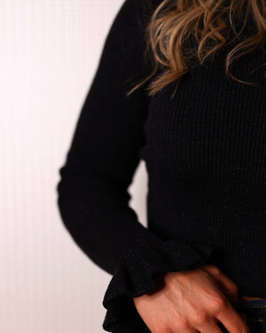 Esta camisola de malha canelada com folho é a fusão perfeita entre conforto e estilo. O padrão canelado traz um toque clássico e elegante, enquanto o detalhe de folho nas mangas adiciona um charme delicado e moderno à peça.