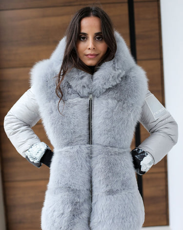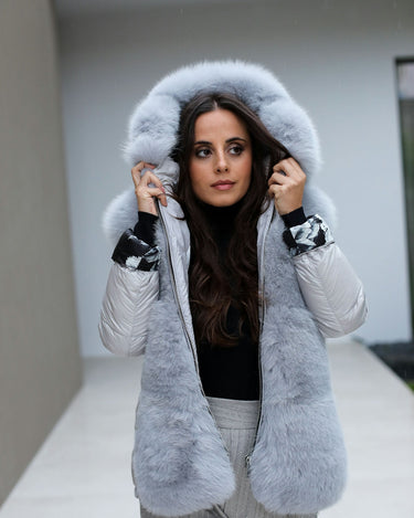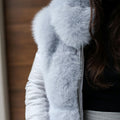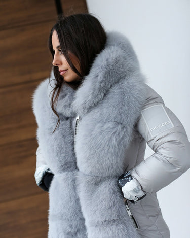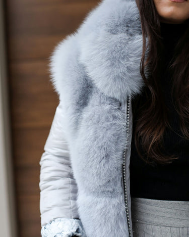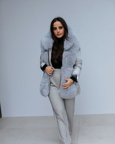 Kispo cinzento acolchoado com detalhe em pelo macio, perfeito para os dias frios. O corte moderno e confortável garante um visual elegante e protegido contra o frio.