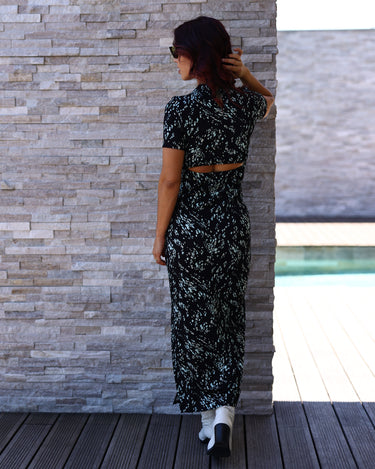 Sensualidade sutil: o vestido de malha com abertura nas costas combina conforto e sofisticação num único design.