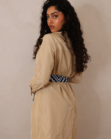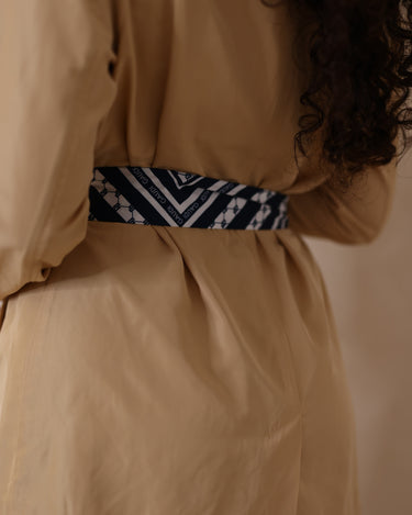 A gabardine com cinto monograma é uma peça sofisticada que combina o estilo clássico e o moderno de forma elegante. O tecido de gabardine, conhecido pela sua durabilidade e acabamento impecável, oferece um caimento perfeito, enquanto o cinto com monograma adiciona um toque de exclusividade e personalidade à peça. Ideal para criar looks refinados e cheios de estilo.