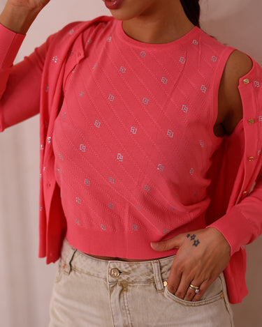 O top com strass é uma peça elegante e cheia de brilho, que adiciona sofisticação ao visual de forma delicada. Os detalhes em strass proporcionam um toque de glamour, tornando este top ideal para ocasiões especiais. Versátil e moderno, ele pode ser facilmente combinado com calças de cintura alta ou saias elegantes, criando um look sofisticado e estiloso.
