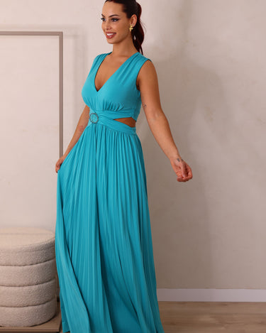 O vestido com abertura e plissado é uma peça elegante que combina movimento e sensualidade de forma subtil. O detalhe plissado confere leveza e sofisticação, enquanto a abertura acrescenta um toque moderno ao visual. Ideal para ocasiões especiais ou para destacar-se com estilo em momentos marcantes.
