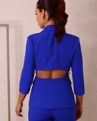 O blazer com aberturas e nó é uma peça moderna e cheia de estilo, que combina o corte clássico do blazer com detalhes ousados e contemporâneos. As aberturas estrategicamente posicionadas e o nó na parte frontal adicionam um toque único, criando uma silhueta mais fluida e dinâmica. Esta peça é perfeita para eventos formais ou para transformar um look casual em algo mais refinado.