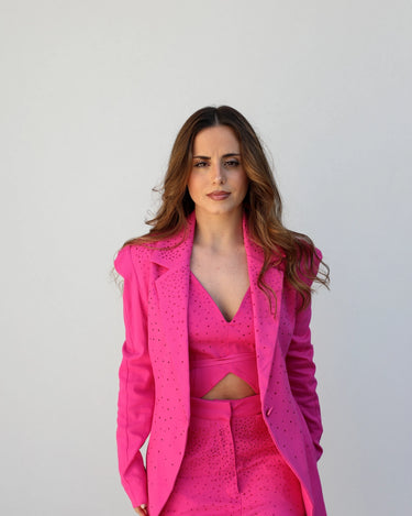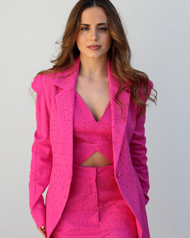 Este blazer é uma escolha brilhante para um toque de glamour no seu guarda-roupa. Feito em malha confortável, ele destaca-se pela aplicação sutil de brilho.
