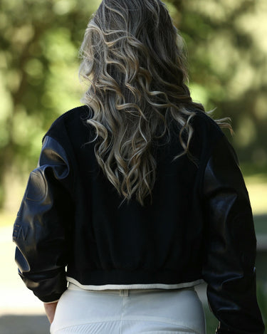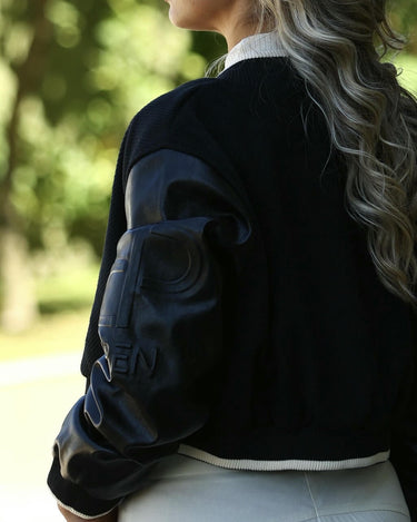 O blusão contraste de tecidos é versátil, podendo ser usado em combinações casuais, como jeans ou calças de fato-de-treino, ou até para composições mais ousadas, como com calças de couro ou saia lápis. Esta peça é ideal para quem gosta de adicionar um toque de modernidade e criatividade ao look do dia a dia, sem perder o conforto.