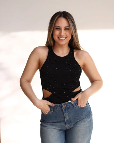 O body em brilho com aberturas da Open é uma escolha deslumbrante para quem deseja um look sofisticado e ousado. Feito com um tecido que reflete a luz, este body adiciona um toque de glamour ao visual. As aberturas estrategicamente posicionadas criam um efeito sensual e elegante.