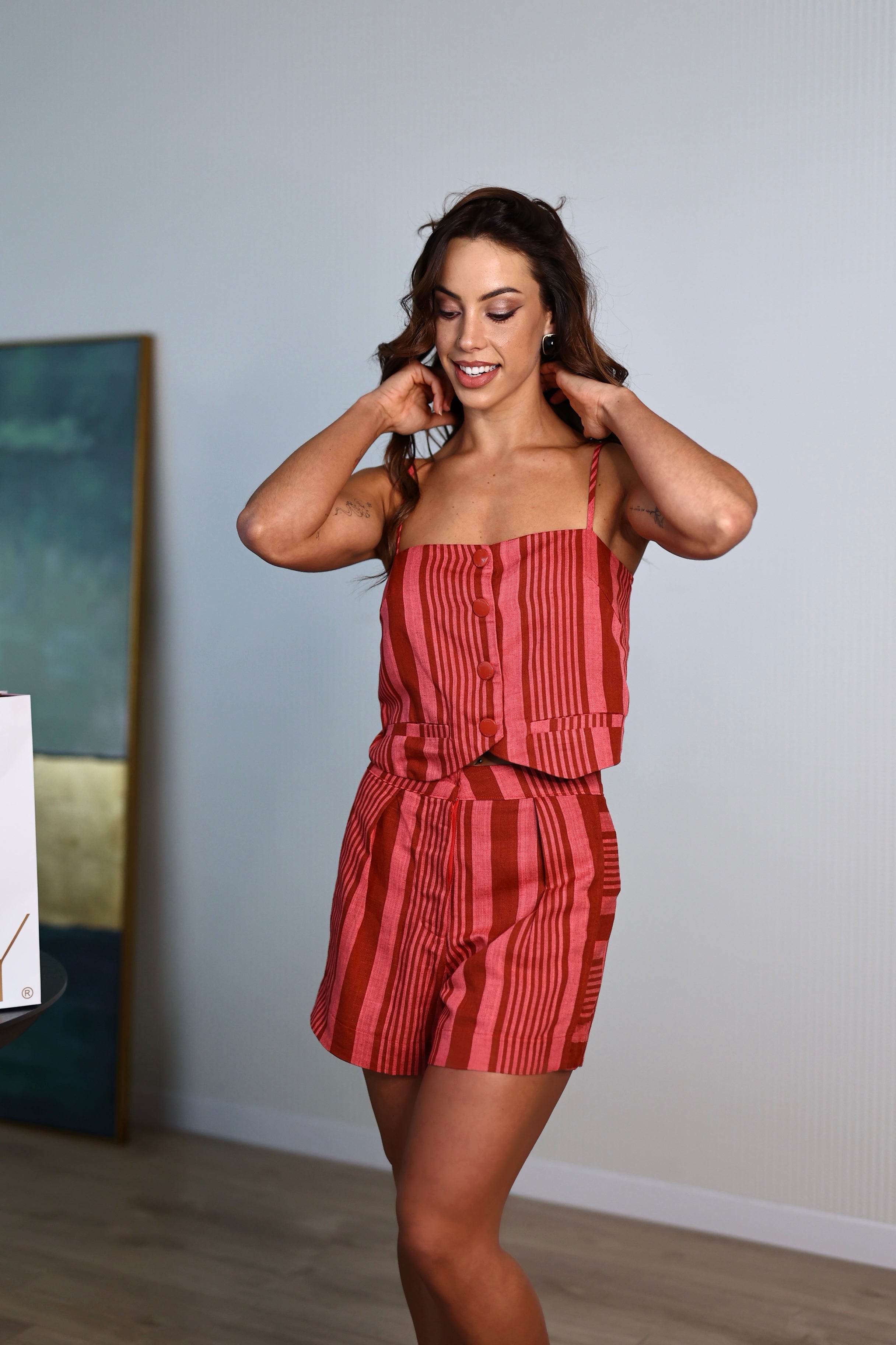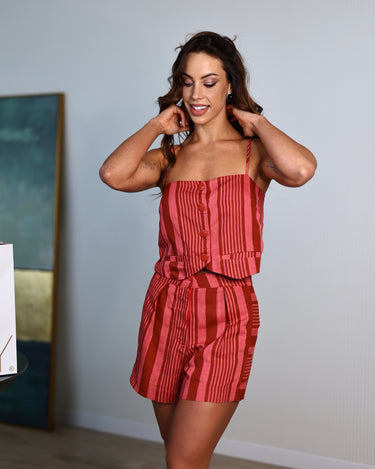 Calção em linho listrado