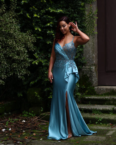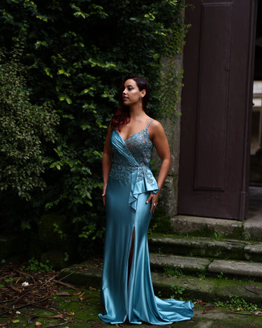 Elegância intemporal num vestido de cerimónia deslumbrante. Com um corte sofisticado e detalhes refinados, é a escolha perfeita para brilhar em qualquer ocasião especial.
