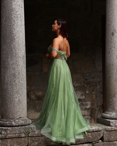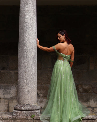 Elegância intemporal num vestido de cerimónia deslumbrante. Com um corte sofisticado e detalhes refinados, é a escolha perfeita para brilhar em qualquer ocasião especial.