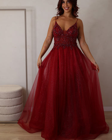 Elegância intemporal num vestido de cerimónia deslumbrante. Com um corte sofisticado e detalhes refinados, é a escolha perfeita para brilhar em qualquer ocasião especial.