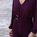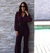 Macacão elegante com decote em V, que valoriza a silhueta e transmite sofisticação. Perfeito para ocasiões especiais e looks modernos com um toque de charme.