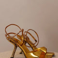 As sandálias Jeffrey Campbell são uma verdadeira declaração de estilo e sofisticação. Com um acabamento metálico brilhante, elas adicionam um toque de glamour a qualquer look, seja para uma noite especial ou para um evento mais casual. O seu design moderno e arrojado, aliado ao conforto, faz destas sandálias a escolha ideal para quem deseja combinar elegância e ousadia.