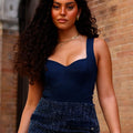 O top sem costuras estilo ganga é uma peça moderna e minimalista que combina o visual despojado e versátil do tecido denim com o conforto de uma peça sem costuras, proporcionando liberdade de movimento e um toque suave à pele.