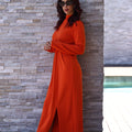 Elegância refinada: o detalhe da gola transforma o vestido num clássico com personalidade.