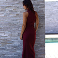Vestido em malha canelada com racha, moderno e sofisticado. Ideal para looks elegantes ou casuais, acrescentando um toque de estilo e movimento a qualquer ocasião.