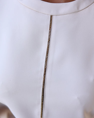 Top elegante com detalhe de corrente dourada, que traz sofisticação e elegância ao look.