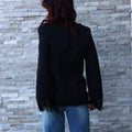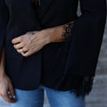 Alfaiataria sofisticada com toque delicado de renda, que acrescenta elegância sutil e modernidade ao visual.