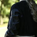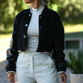 O blusão contraste de tecidos é versátil, podendo ser usado em combinações casuais, como jeans ou calças de fato-de-treino, ou até para composições mais ousadas, como com calças de couro ou saia lápis. Esta peça é ideal para quem gosta de adicionar um toque de modernidade e criatividade ao look do dia a dia, sem perder o conforto.