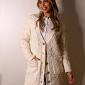 Este casaco de malha com pérolas é a combinação perfeita de sofisticação e conforto. As pérolas aplicadas ao longo da peça adicionam um toque de elegância e glamour, transformando um casaco simples em uma peça única e cheia de estilo. Feito em malha macia e aconchegante, ele oferece calor e conforto nos dias mais frescos, enquanto seu design versátil permite que seja facilmente combinado com diferentes looks, desde os mais casuais até os mais sofisticados.