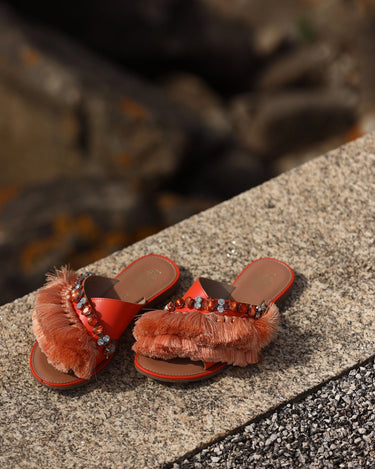 Os chinelos com franjas da Parodi são uma opção divertida e única para calçados casuais. Com um design criativo, apresentam pequenas franjas decorativas na parte superior dos chinelos, adicionando um toque de originalidade e estilo ao seu visual. São confortáveis e práticos para uso diário, perfeitos para relaxar em casa ou para dar um toque descontraído aos seus passeios.