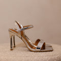A sandália metalizada é perfeita para quem deseja adicionar um toque de brilho e sofisticação ao look. Com um acabamento metalizado e design moderno garante um visual elegante e versátil. Tornando-se um pormenor indispensável para quem ama destacar-se com glamour e atitude.