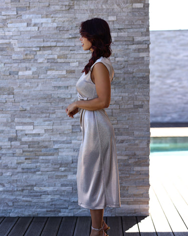 Vestido brilhante, moderno e cheio de personalidade. Ideal para ocasiões especiais ou looks de destaque, acrescentando glamour e estilo único.