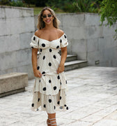O vestido de bolinhas com folho é uma peça atemporal que combina o charme das bolinhas com a leveza e o movimento do folho. Essa combinação resulta num look romântico e feminino, perfeito para diversas ocasiões.
