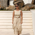 O vestido com abertura e apliques de conchas da Lez a Lez é uma peça deslumbrante que evoca uma vibe praiana e tropical. Com uma abertura na parte frontal que adiciona um toque sensual ao vestido, os apliques de conchas acrescentam um elemento único e temático ao design. Feito com tecido de alta qualidade, oferece conforto e um caimento impecável. Este vestido é perfeito para ocasiões casuais à beira-mar, festas temáticas ou até mesmo para criar um visual descontraído e estiloso durante o verão.