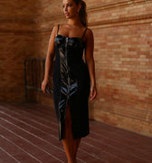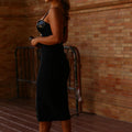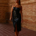O vestido com efeito corpete em verniz é uma peça ousada e marcante, perfeita para quem deseja criar um visual impactante e cheio de atitude. Com um design que simula o formato de um corpete, valoriza a silhueta ao oferecer estrutura e definição na parte superior, enquanto o tecido em verniz confere um brilho moderno e arrojado.