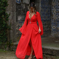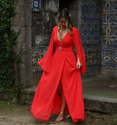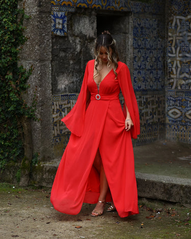 O vestido longo com racha da Rinascimento é uma peça deslumbrante que combina elegância e sensualidade de forma harmoniosa. Com um design sofisticado e um corte longo fluido, este vestido oferece uma silhueta graciosa e refinada.
