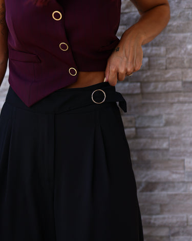 Corte elegante realçado por detalhe dourado, que acrescenta sofisticação e um toque de modernidade ao look.