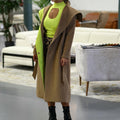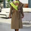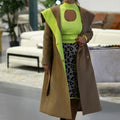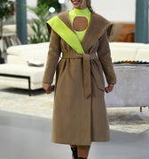 The lime-colored overcoat is a sophisticated piece full of personality, perfect for adding a touch of modernity to the classic look of a winter coat. It combines elegance and sophistication, making it ideal for those who want to break away from tradition without losing style.