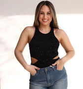 The openwork glitter bodysuit from Open is a stunning choice for those who want a sophisticated and daring look. Made with a fabric that reflects light, this bodysuit adds a touch of glamor to your look. Strategically positioned openings create a sensual and elegant effect.
