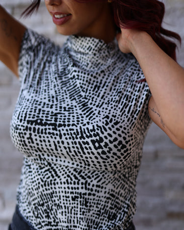 Corte clássico com estampa abstrata que adiciona modernidade e personalidade ao look. Uma peça versátil e elegante para o dia a dia.